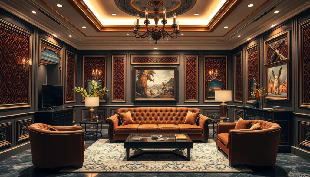 على عكس ألوان الباستيل الناعمة شهد عام ٢٠٢٥ أيضًا دخول ألوان أكثر جرأة وحيوية تشكل نقاطًا محورية في مساحات المعيشة تحدث درجات الألوان الجوهرية العميقة مثل الأخضر الزمردي والأزرق الياقوتي، نقلة نوعية في التصميم الداخلي المعاصر تضفي هذه الألوان الغنية تصميم ورق جدران لمسة من الرقي والفخامة ما يجعلها خيارات مثالية لجدران مميزة أو قطع ديكور مميزة في غرف الطعام أو غرف المعيشة يتيح لها تنوعها التناغم مع المواد الطبيعية كالخشب والحجر مما يعزز الجمال العام ويضفي عمقا منعشا على البيئة